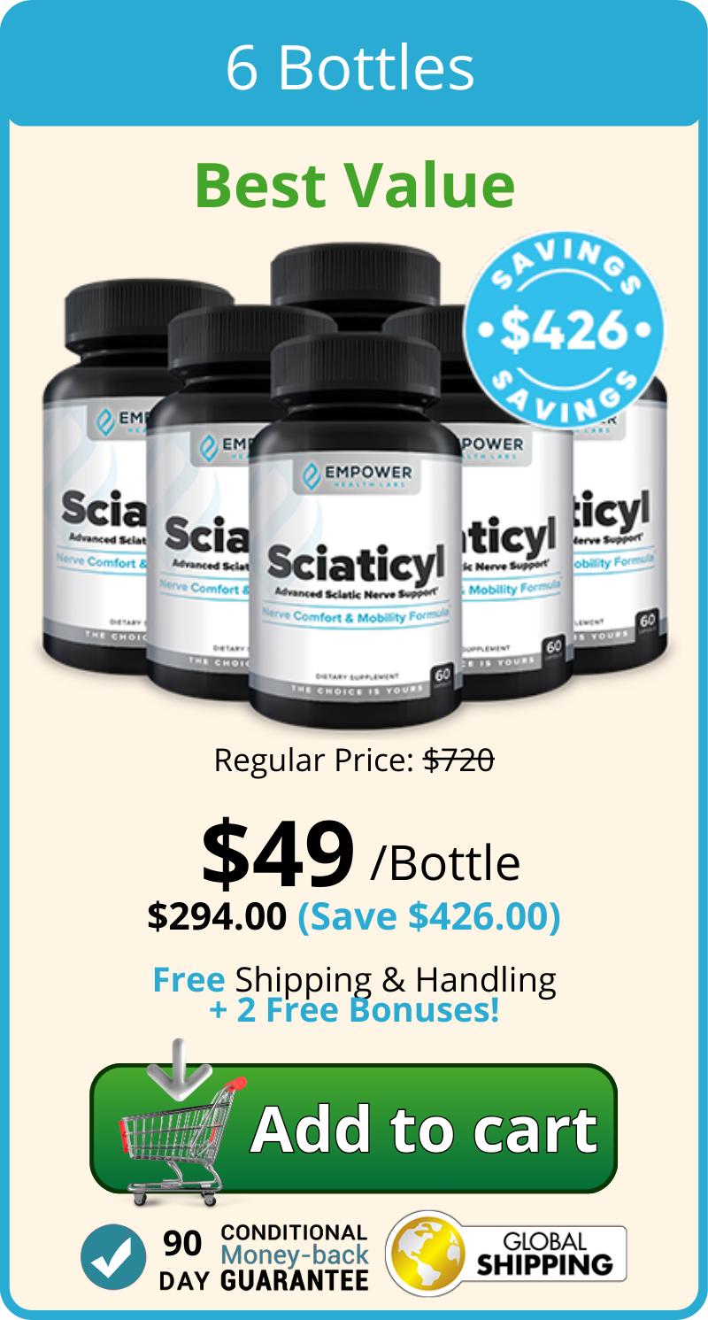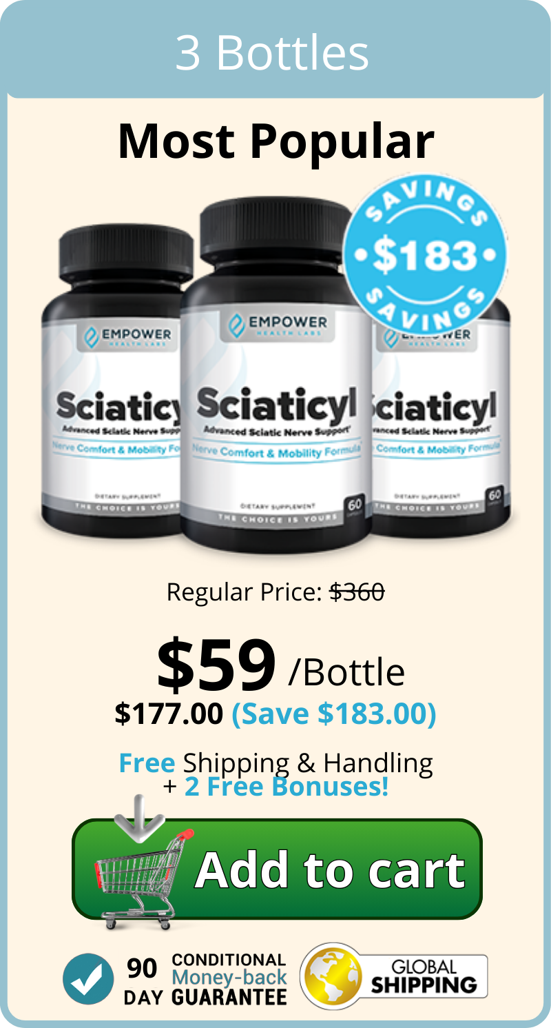 Sciaticyl is a supplement specifically designed to relieve the burning, tingling, and numbness caused by Neuropathy. Its advanced formula is backed by research and combines scientifically proven ingredients that help soothe overactive nerves, promote healthy nerve function, and reduce inflammation.
